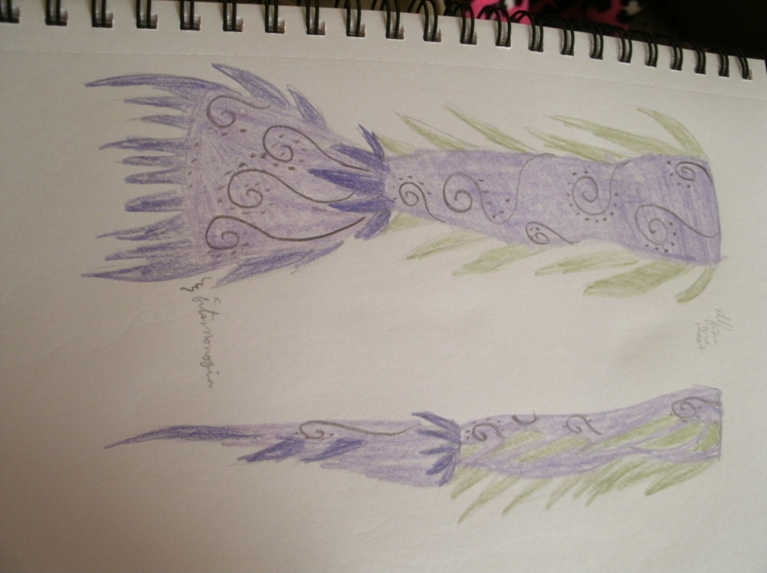 Quick sketch of a set of leg fins idea I have. Similar to some silicone arm fins. Sorry about the quality, bad tablet pic.