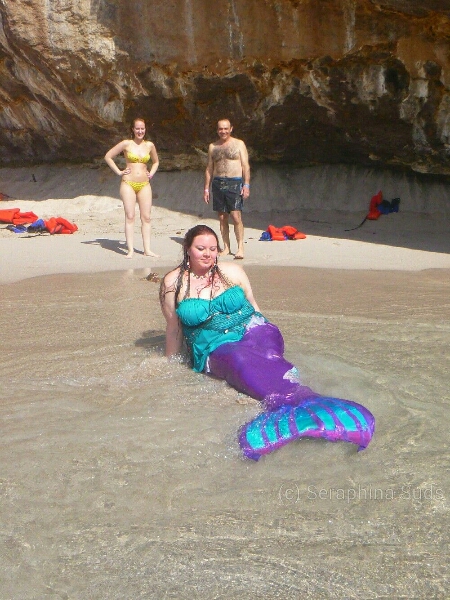 The only way to gain access to the beach is through that tiny slit of light in the cave. Honestly, I was stupid to do it in a tail, but I couldn't pass up the photo op. My poor mom almost didn't make it in; the waves came and trapped her under the cave. She scraped up her arm, but was otherwise okay thanks to the tour guides. It was super scary though.