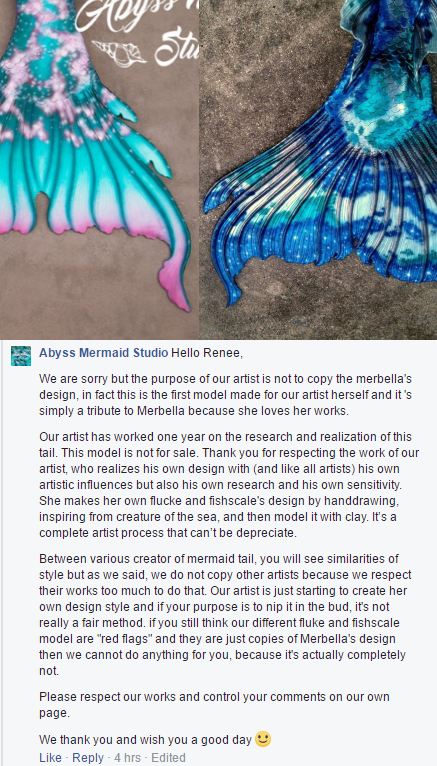oh yeah I saw that too I think another mer told me/showed me it's the same page that was making fabric print outs of peoples tails. I dont know for sure but I think they're known for copying