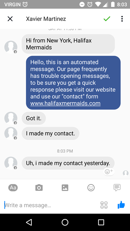 hey everyone there's a guy that goes by Xavier Martinez/ Israel Martinez Jr and he's been hitting up mermaids a lot. When he first started on my page I thought it was a kid. But did some digging and it turns out he's a grown man trying to solicit mermaids into 1 on 1 time.