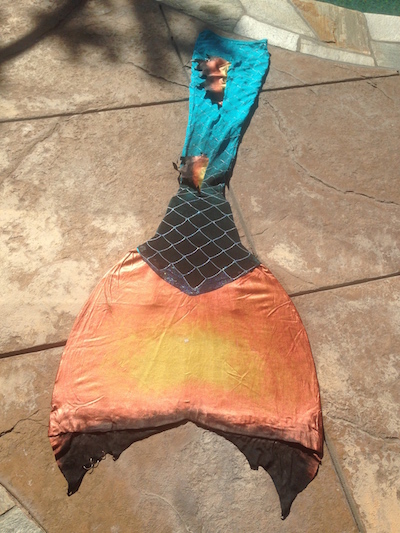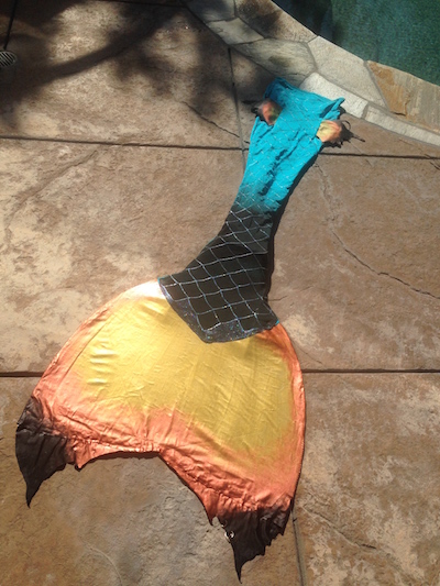 My newest baby! Spandex and what I like to call latex (the paint was mainly latex aha) mix tail. She has a Finis Competitor monofin.