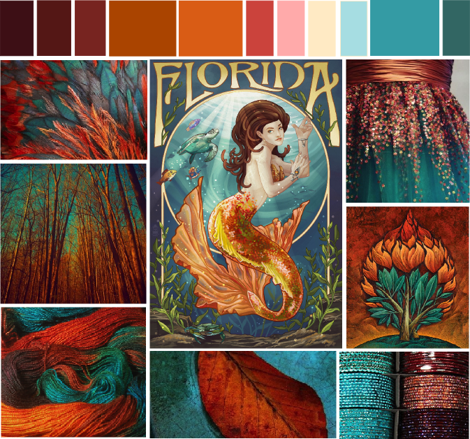 I just found this again: my original color scheme collage! It's turning out far less orange than I'd originally intended...more like the pic at the top right.