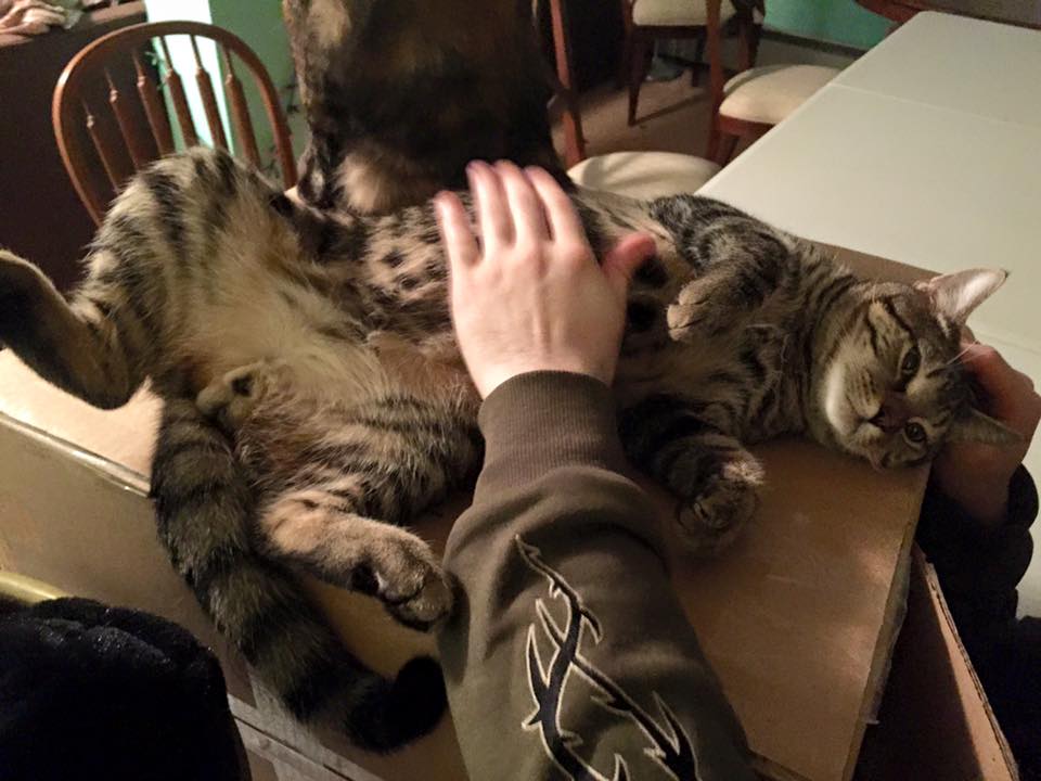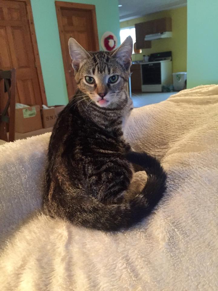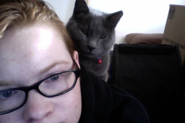 My cat, Caven, who's suddenly taken an interest in sitting on my back.