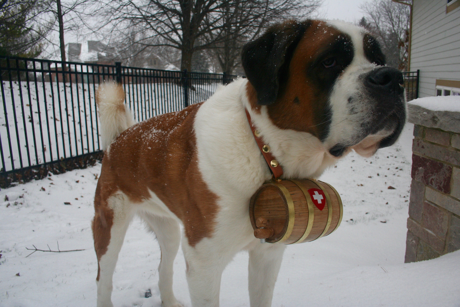 It's finally snowing! Miss Lucy is out searching for folks in need of rescue! We got her the keg for Christmas. Yes, it's functional. It can hold fluid and the little spigot works. No, we do not plan to use our dog as our own personal bartender. ;)
