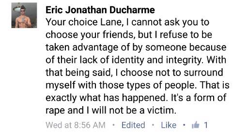 Frankly I'm sick of gay men who think that since they're oppressed in one area they have an excuse to be a complete and utter ass in all other areas. And I'm 80% sure that's what Eric is. So I'm gonna do my best to just... Ignore all his shit from now on. Ugh.