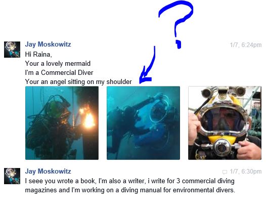 My page got hit with Chris Perry. So far, pretty innocent messages, and he pointed out that I don't cover enough mermen in my facebook page. No issues yet. The girls on my page are asking for more mermen as well.