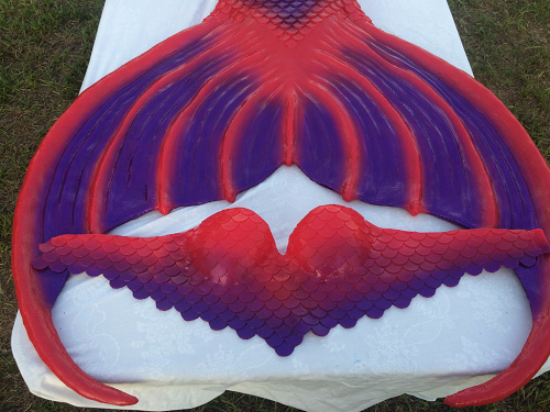 It isn't as glorious as many of the other tails here, but I finally finished my first spandex tail this past weekend. I still need to sew on a few more snaps to the fluke where I left an opening for removal of the monofin and I still want to add black outlined scales.. but it's swimable now at least. :) I just bought some new spandex in a very pretty emerald green tonight so plans for my 2nd tail are already in the works. I'm officially addicted and have found at least 3 more fabrics I want to make tails out of in the coming months, as I'm able to afford it.Attachment 29853