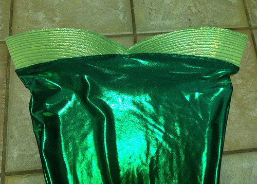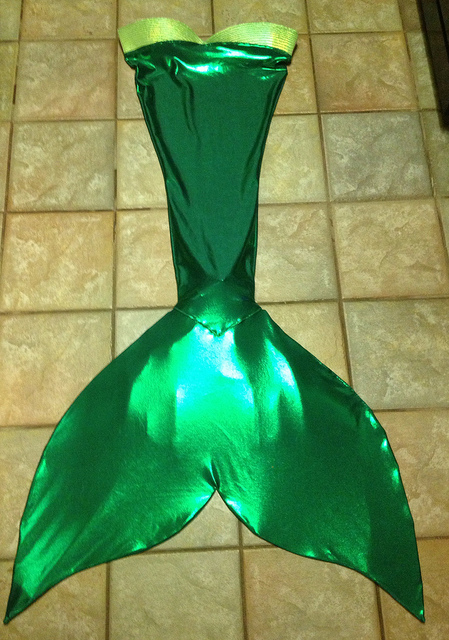 Finished a spandex swimming tail for a client this weekend; shipping it today. She wanted Ariel hip fins; first time I've done them & happy with how they turned out. She will flip them down against her hips when swimming. :)