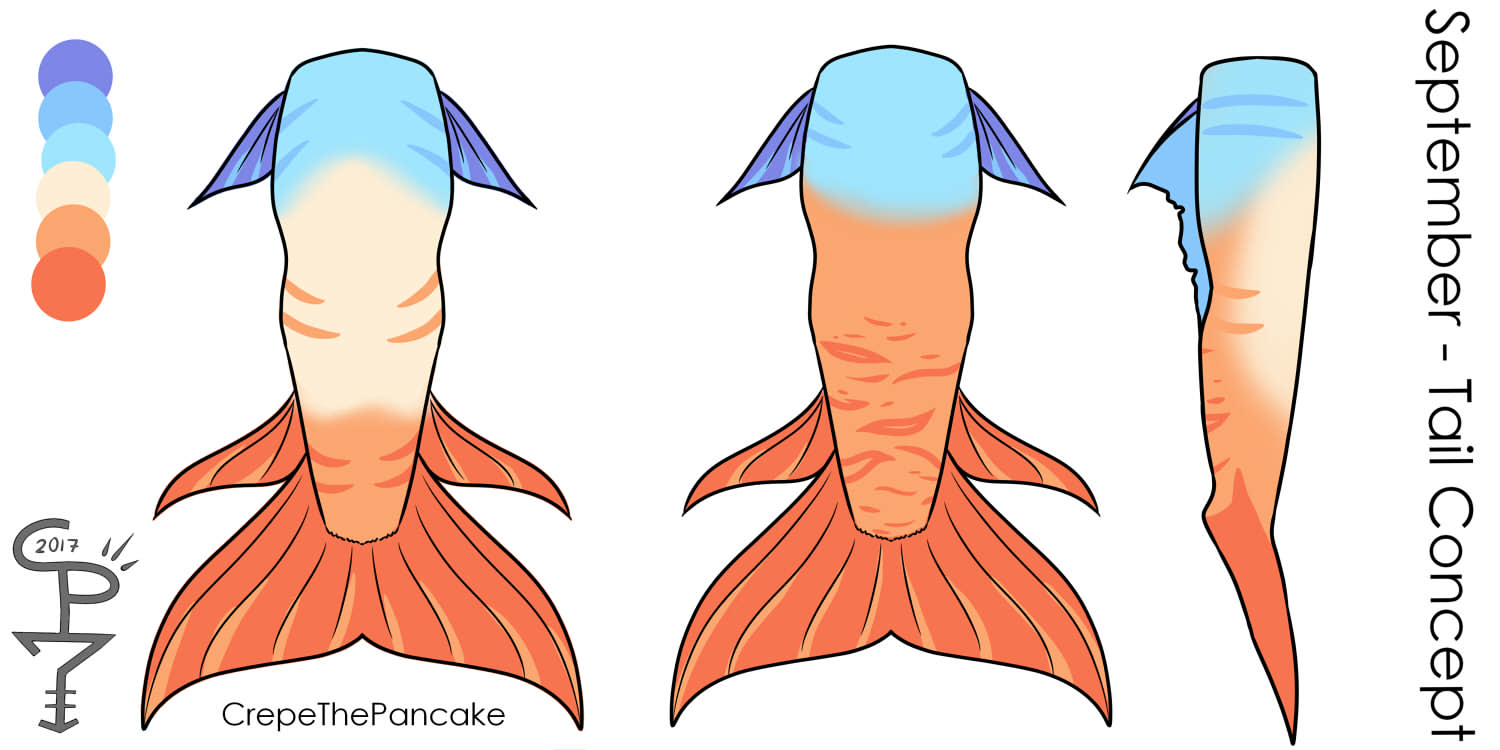 My tail is already finished but I just realized I never uploaded its' final design! It's a sequin tail with a silicone fluke!