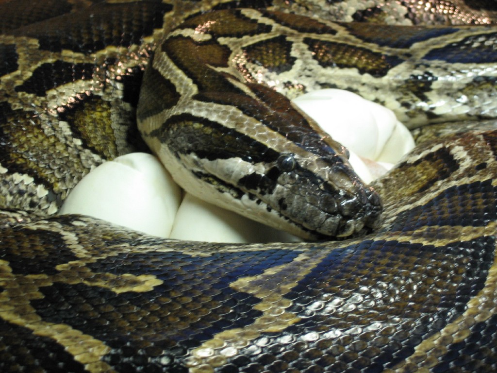 Yes. For scale, the eggs are a bit bigger than chicken eggs. Pythons wrap themselves around the egg pile and incubate them. Eventually, they hatch.
