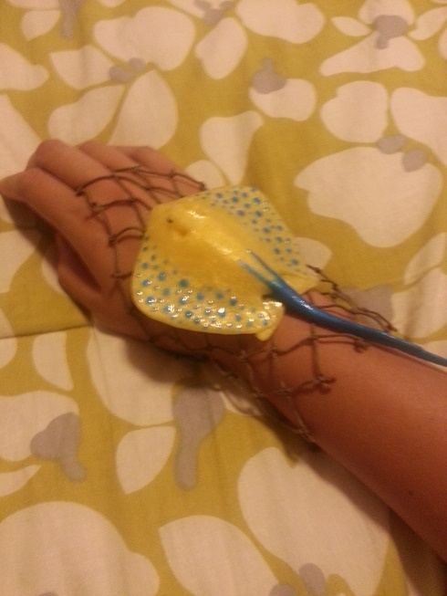Any of my critters could theoretically be made into wearable items. I make them just as-is because that's the way I like them, but when Elodea ordered her stingray she mentioned she wanted to put him on a wristband so I siliconed a piece of felt onto the bottom to make it easier to glue on (since glue wouldn't really stick to the silicone). It's probably not something I'll list on Etsy as a variation, but for you guys on here, if you want to convo me and request an added felt patch or something to make the critter easier to glue onto something, that's totally fine. It would work better with the flat-bottomed creatures (which is basically all of them except the shark, which I made in 2 pieces which I stuck together to make it 3D) but I'm open to suggestions.