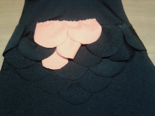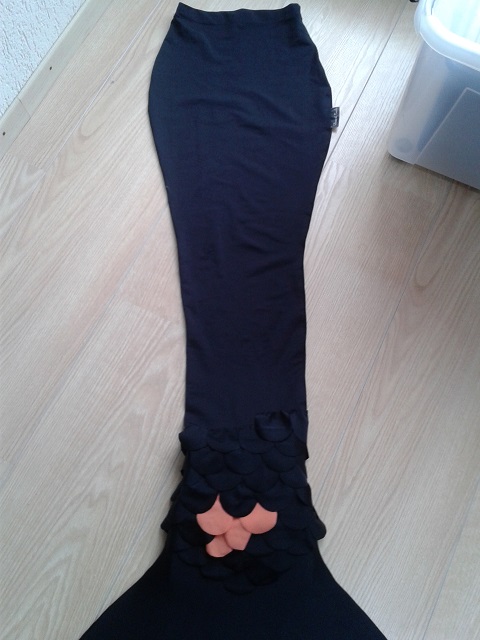 And I found some white fabric to use to cover my monofin a sew to the rest of the fluke in an attempt to keep the fluke around my monofin.