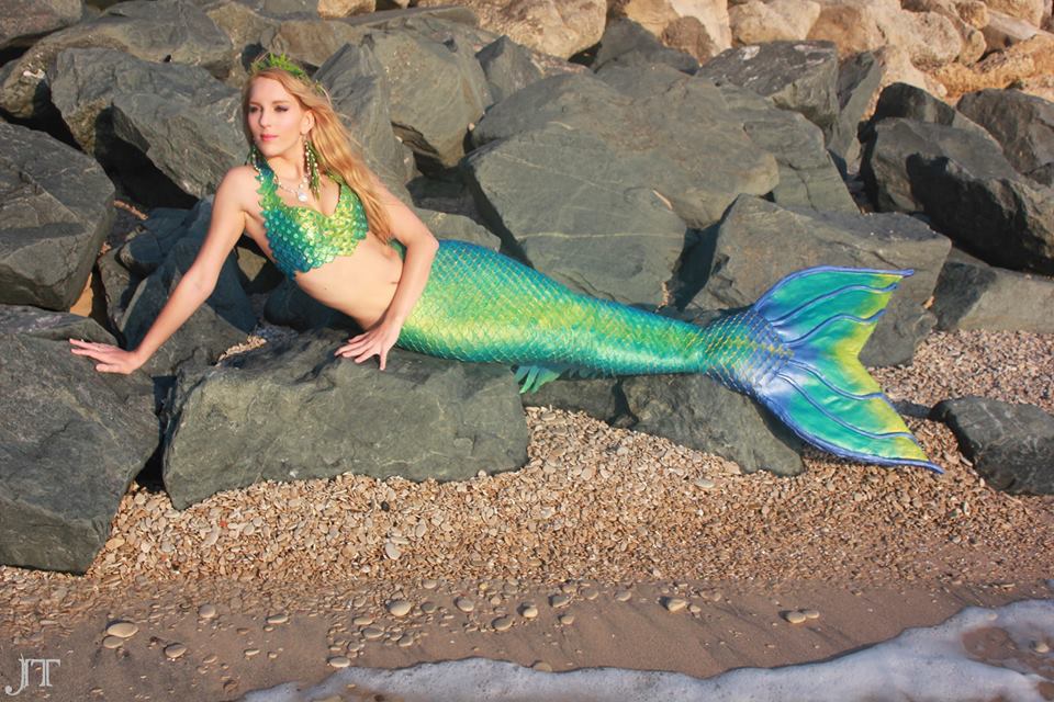 My friend Claire, who is a professional french mermaid in Paris, made some photos this week-end with her new tail made by herself. She is also wearing the birthday presents I gave her this past week which have been made by Iona the Mermaid (the earrings and the necklace). It looks great on her! :D