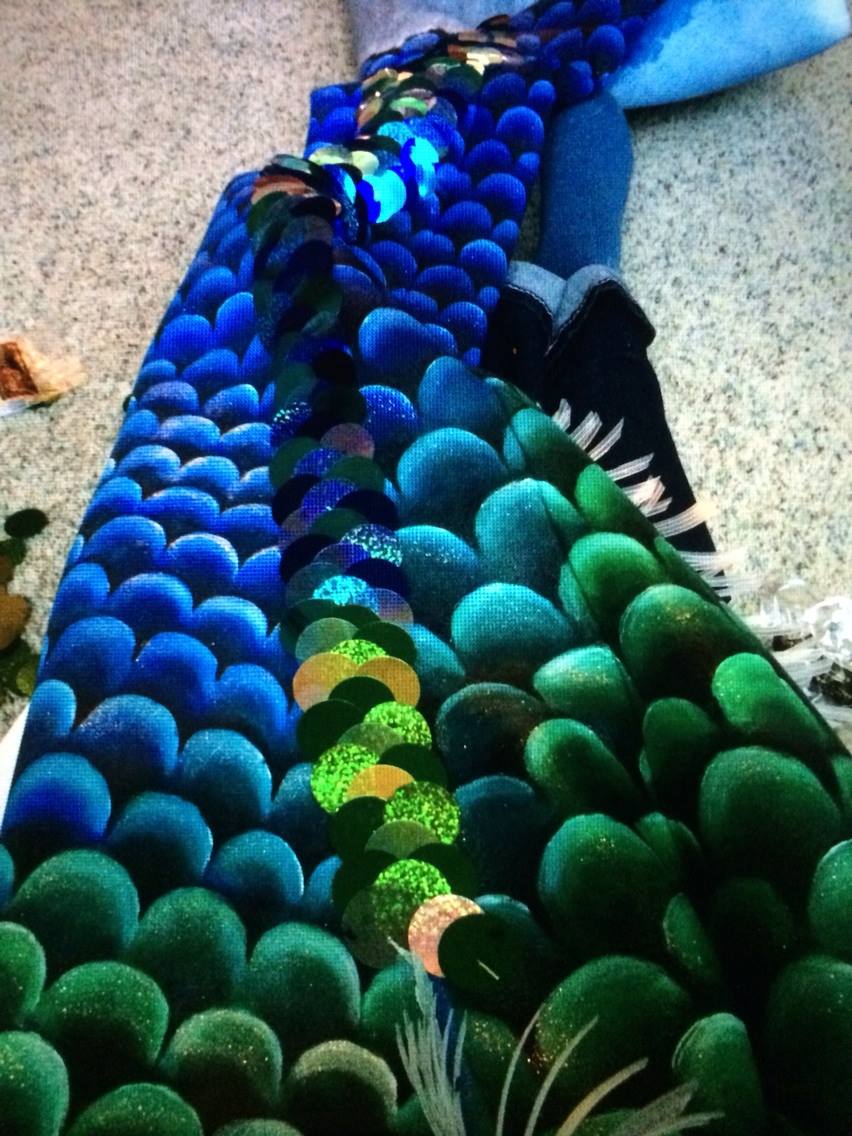 That. Is. Gorgeous. Ohmymerrrr it's so pretty! Keep at it! You can get it done by the weekend! I have to sew sequins on my tail, too. I'm only doing the seams on thr fluke, though.