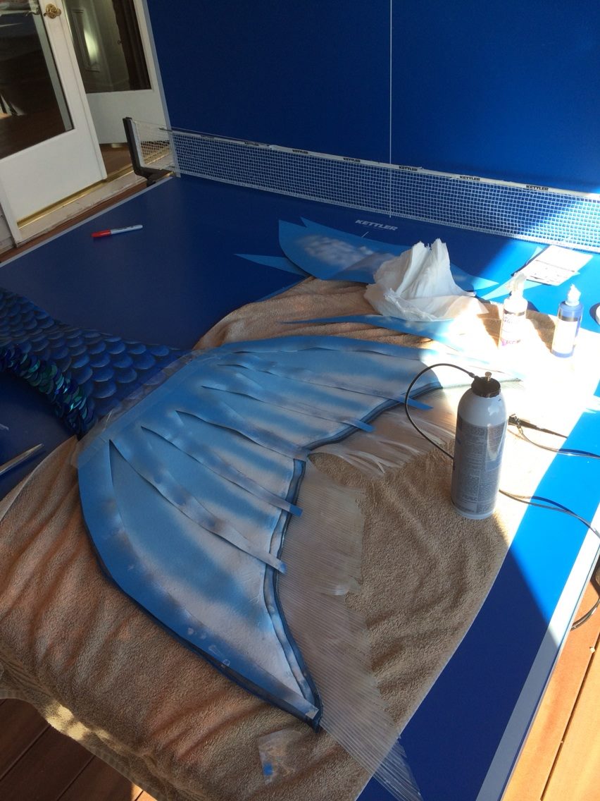so i finished airbrushing the other side of the fluke today and am waiting for it to dry overnight before i take off the painters tap. AH! this is so exciting! i am so close to being finished! i will fix a couple bugs on the first side of the fluke tomorrow and let that dry, then on thursday i will be going sequin crazy again. I'm thinking it'll be done sunday!