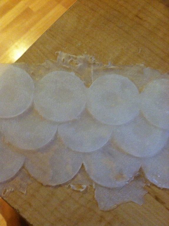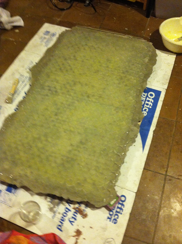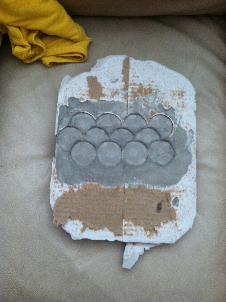 Scale template test mold! It's made of ultracal 30. I forgot to put vaseline on the edge of the cardboard so it it stuck to it, and I just realized I took the photo upside down.