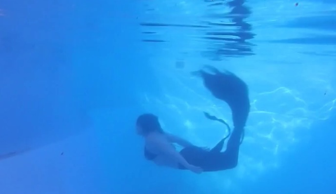 I have to say, you may not get a lot of propulsion from the Fin Fun monofin, but their mermaid scale print is astoundingly beautiful in the water!