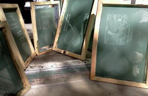 In other news...Took a break from tail refining to burn new silkscreens for tee shirts and tote bags!