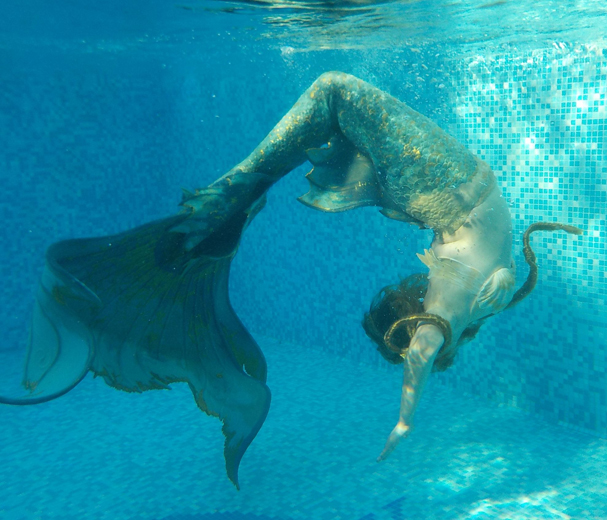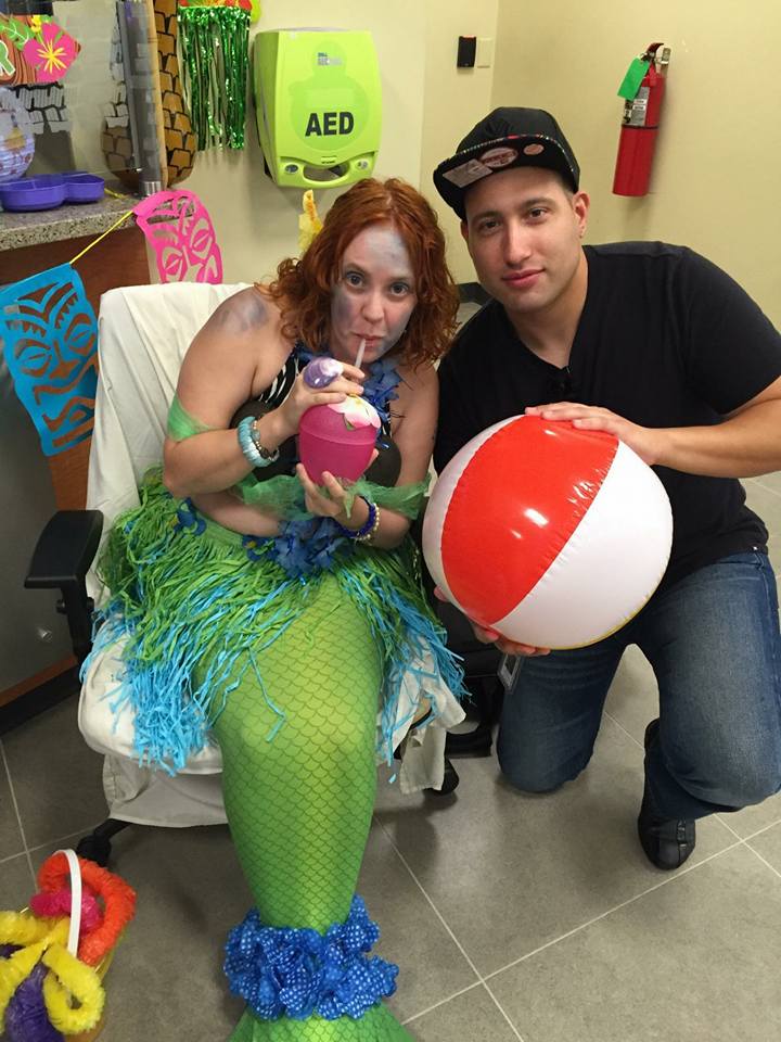 A real mermaid sure beats a couple of tiki torches and a piece of fishnet! Congrats!