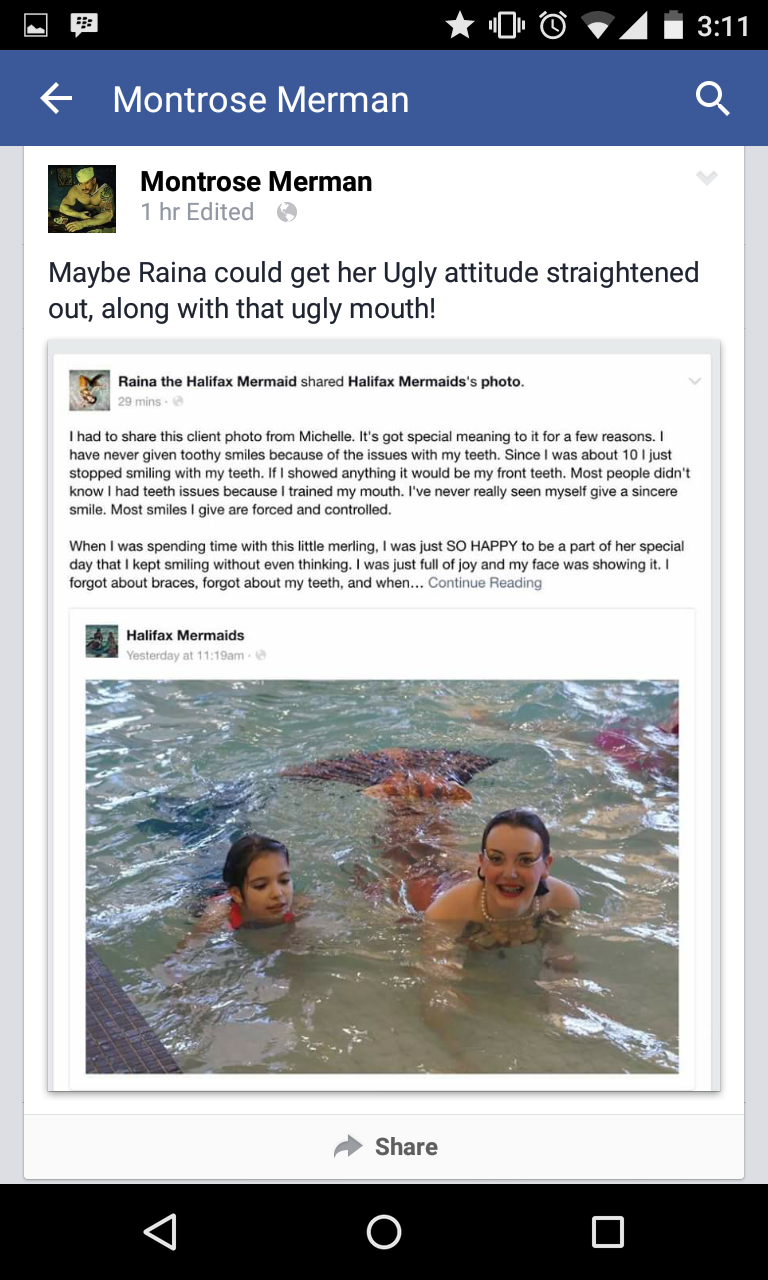 personally I don't think triton is a mervert but he started going through my pictures (even some from when I was 13) and commenting hearts and such. when people start saying things like "love u mermaid" it makes me totally uncomfortable.
