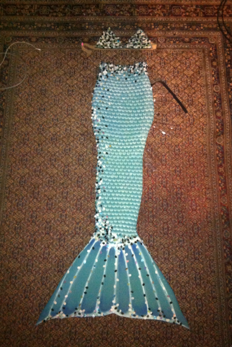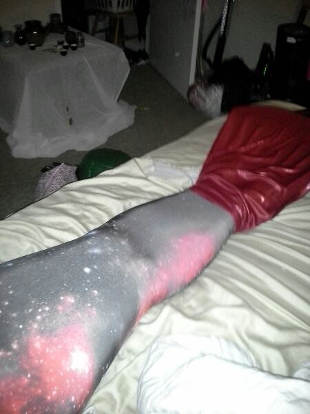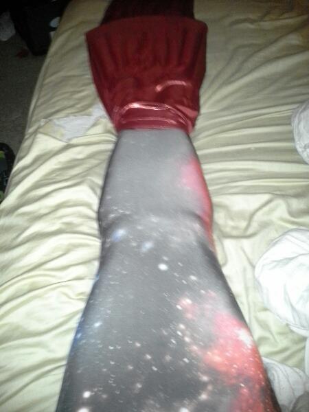 My fist fabric tail which I made out of old galaxy leggings and a left over piece of fabric given to me by my heterosexual soul mate years ago ^^ (and a finis foil monofin tucked inside)