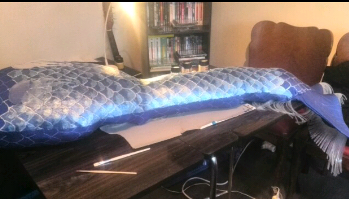 That is an impressive fabric tail! The scale pattern really catches the light, and I am anxious to see how the waist-blending goes! :mermaid kiss: