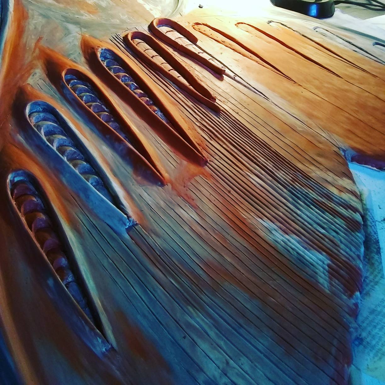 Took off the scales cause I realized that I couldn’t add the lines properly without blending the scales to the new layer so yeah almost done adding the tubes of clay then final phase and plaster time