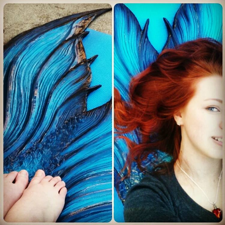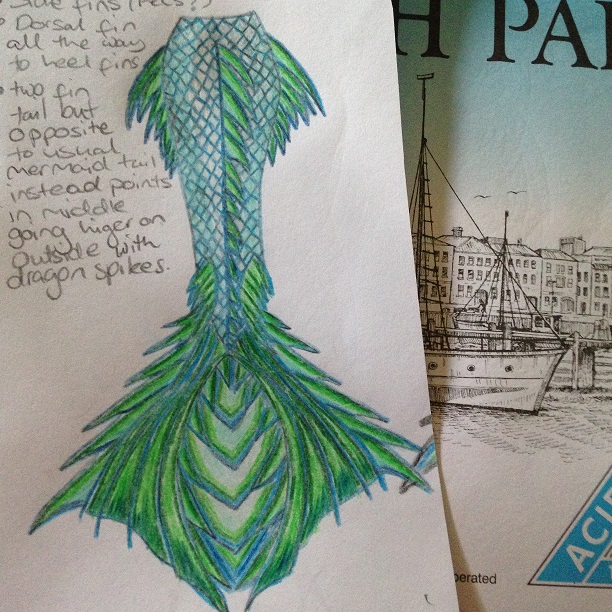That's a beautiful design, Rebecca! You might find it hard to swim in, though, having a separated fluke like that. It's the middle section of the fin, the part you've removed, that gives you the most propulsion.