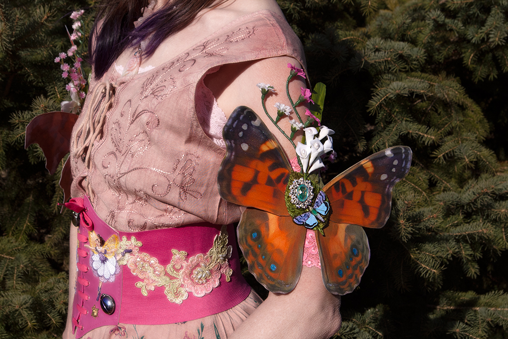 My Etsy shop has just gotten a makeover! I've changed the name to FaerieMermaidGalene to reflect a new line of faerie products in addition to mermaid items. The most exciting new line of products is, I believe, my unique creation: faerie armwings based on real butterfly and moth species. Today I listed two of these, with more ready for listing in the next few days, and even more in future. Here's an example, a butterfly species called the American Lady: