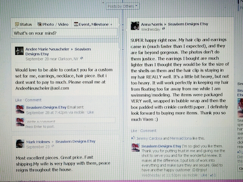 I love your stuff and if I had the money there are SEVERAL things I would buy. But as mermaid accessories are not my priority, I have to wait until I have the money to be able to buy them.